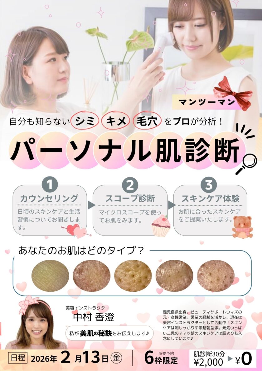 でも、もっと詳しく、正確に自分の肌を知りたい!という方は、ぜひプロの肌診断にお任せくださいね。