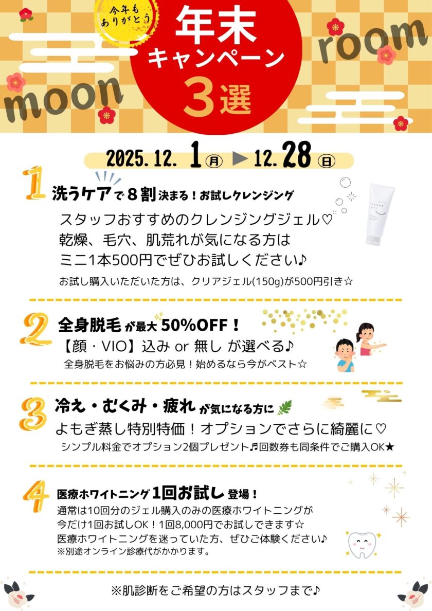 moon roomでは現在、年末キャンペーンを開催中です🎉